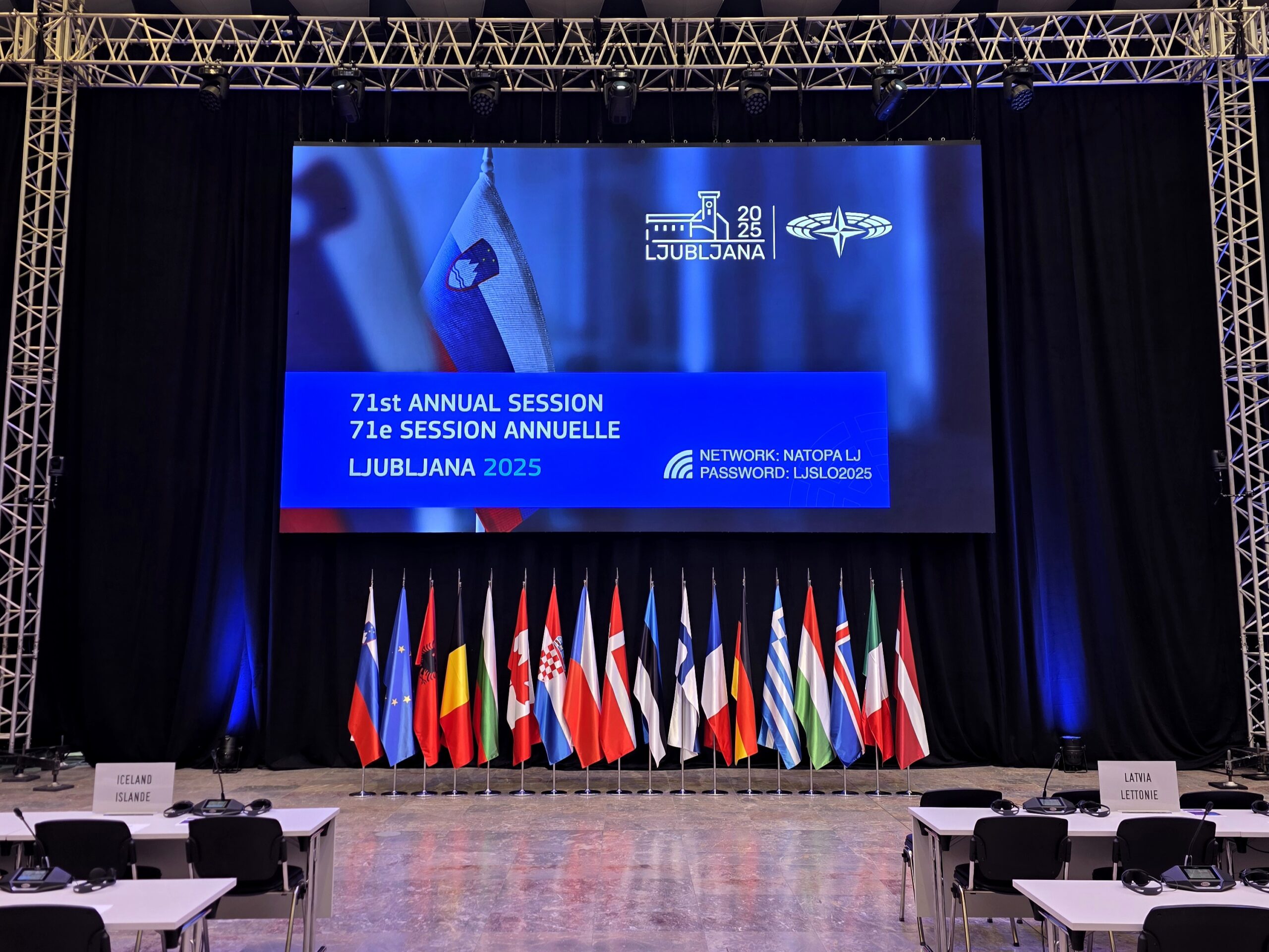 Med 10. in 13. oktobrom 2025 je v Ljubljani potekalo 71. letno zasedanje Parlamentarne skupščine Nata (PS Nato), ki ga je gostil Državni zbor Republike Slovenije v prostorih Gospodarskega razstavišča v Ljubljani. Dogodek je zbral več kot 245 poslancev iz 32 držav članic Nata in partnerskih držav, ki so razpravljali o najnovejših varnostnih izzivih, sprejemali resolucije ter oblikovali priporočila za prihodnjo politiko Zavezništva.
